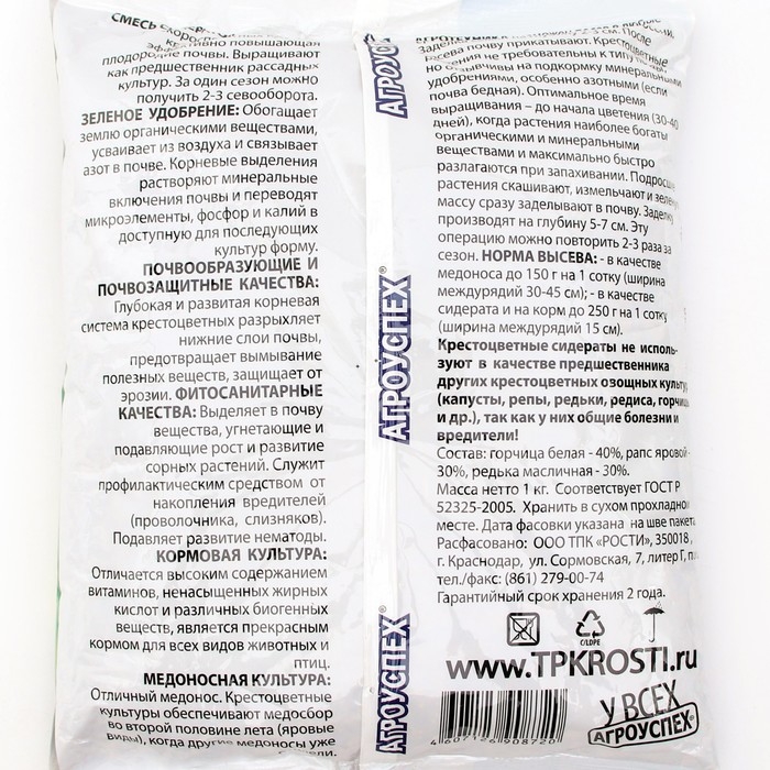 Сидерат "Агроуспех", Смесь крестоцветных, 1 кг