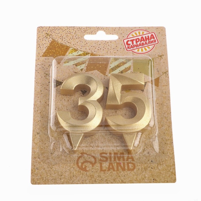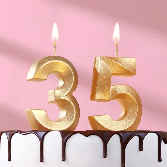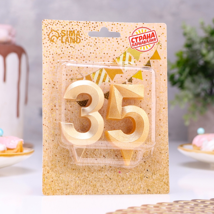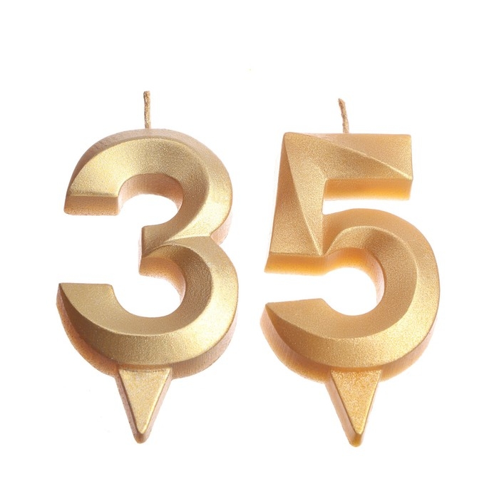 Свеча в торт юбилейная "Грань" (набор 2 в 1), цифра 35, цифра 53, золотой металлик, 6,5 см