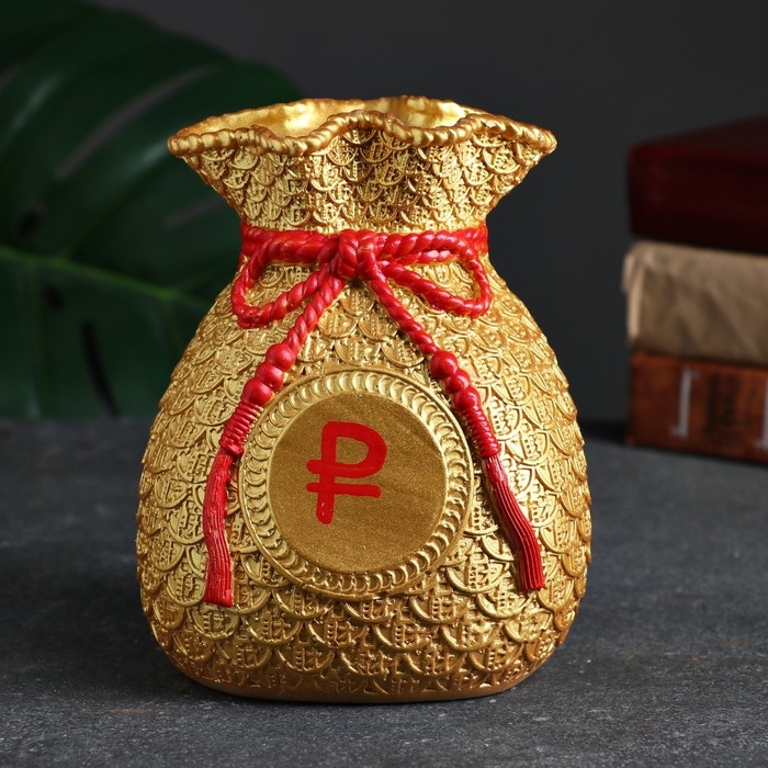 Копилка "Мешок денег" рубль красный, золото, 15 см