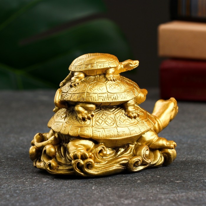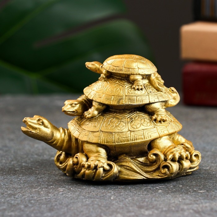 Фигура "Три черепахи" старое золото, 8х11х7см