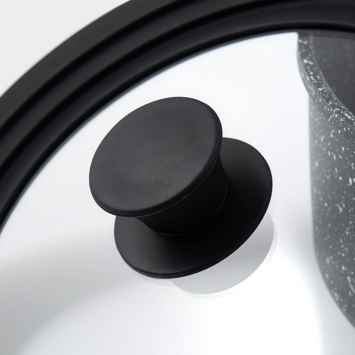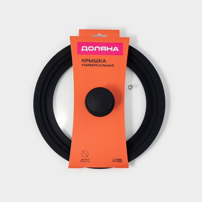 Крышка стеклянная для сковороды и кастрюли Доляна, универсальная, с силиконовым ободком и ручкой, d=20/22/24 см, цвет чёрный