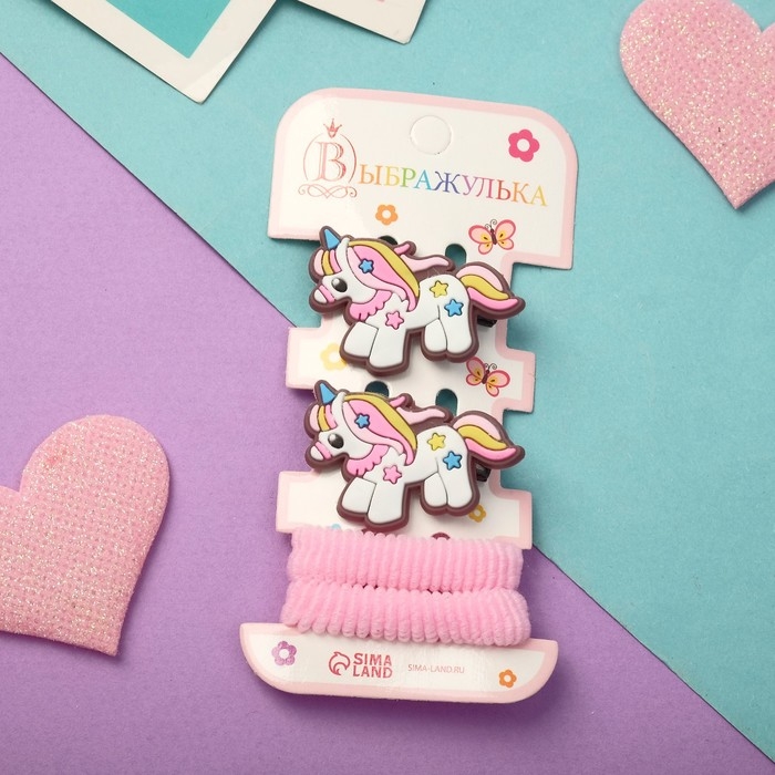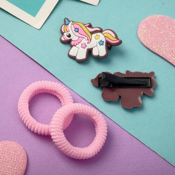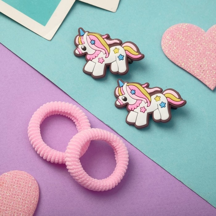 Набор для волос "Ариадна" (2 резинки, 2 зажима) единорог, белый