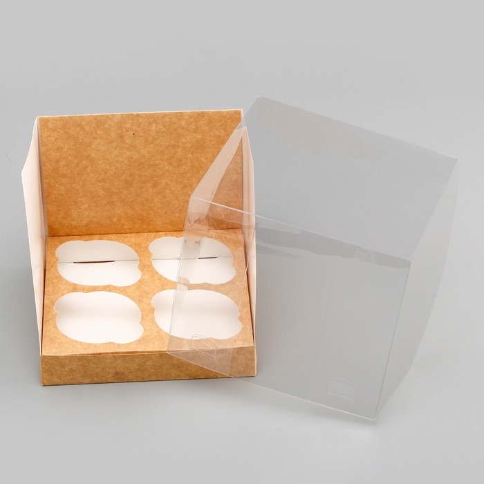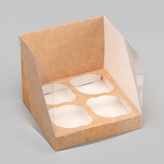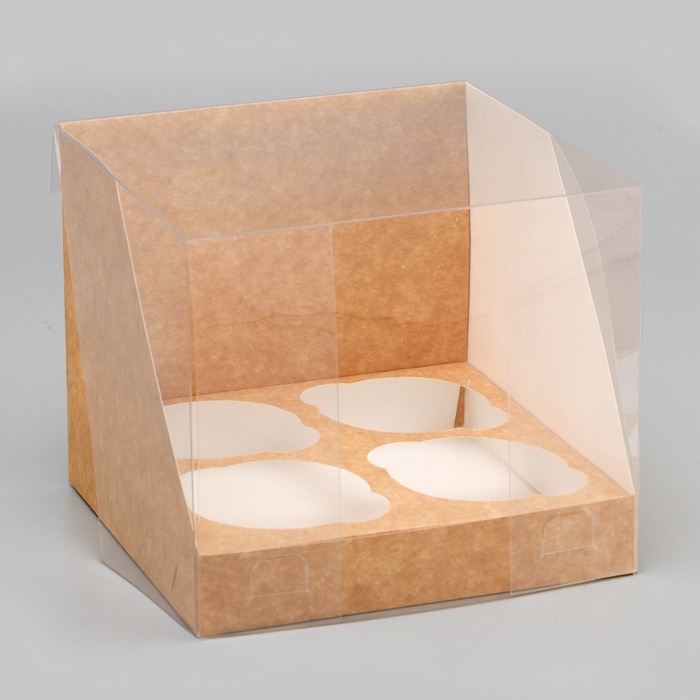 Коробка для 4 капкейков, крафт 16 х 16 х 14 см