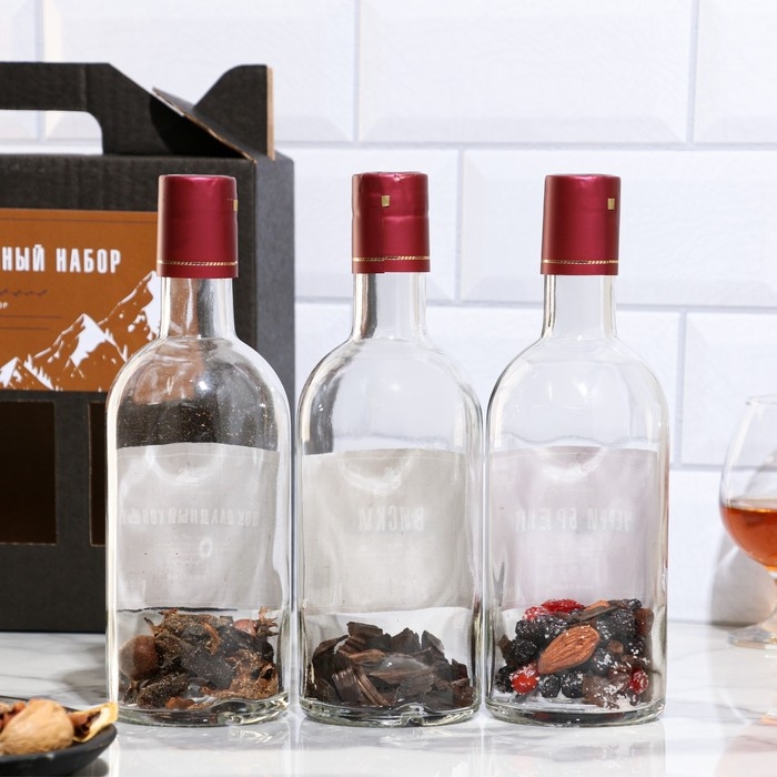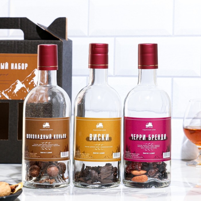 Подарочный набор бутылок по 0.5 литр"КОНЬЯЧНАЯ СЕРИЯ №1" (Шоколад коньяк, виски, черри бренди) 95191