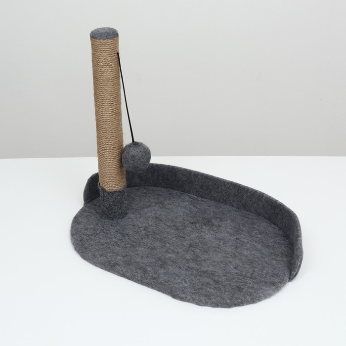 Лежанка с когтеточкой "Пижон", фетровая, овальная, 55 х 36 х 47 см, джут, темно-серая