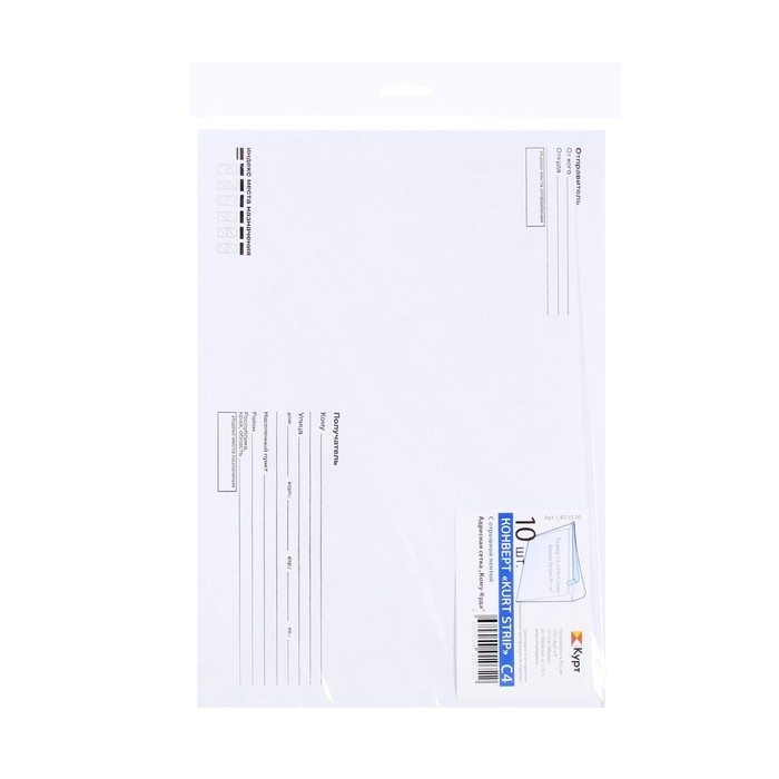 Набор конвертов С4 229 х 324 мм, поле «Кому-куда», без окна, отрывная лента, внутренняя запечатка, 90 г/м2, 10 штук