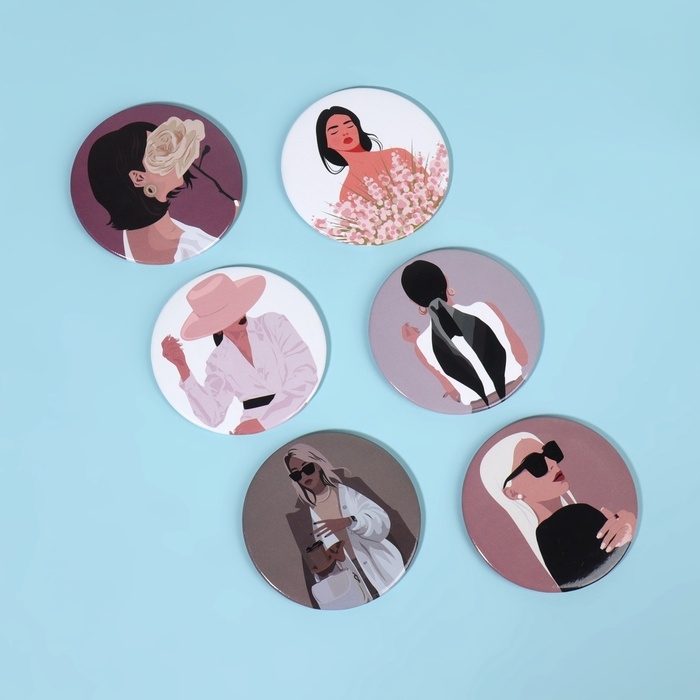 Зеркало карманное «ДЕВУШКИ», d = 7,5 см, PVC - коробка, рисунок МИКС