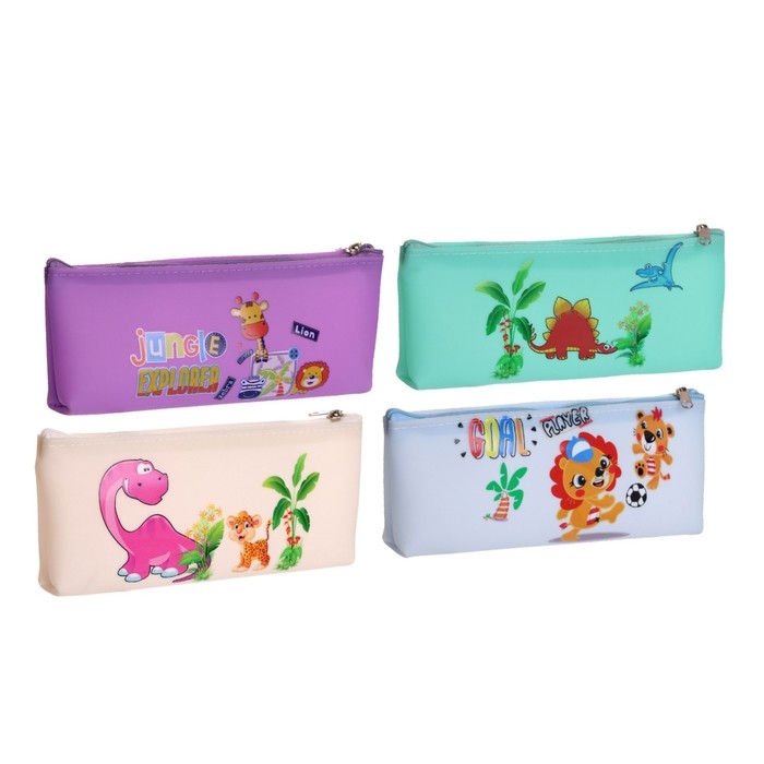 Пенал прямоугольной формы с одним вместительным отделением застегивается на молнию с удобным бегунком.