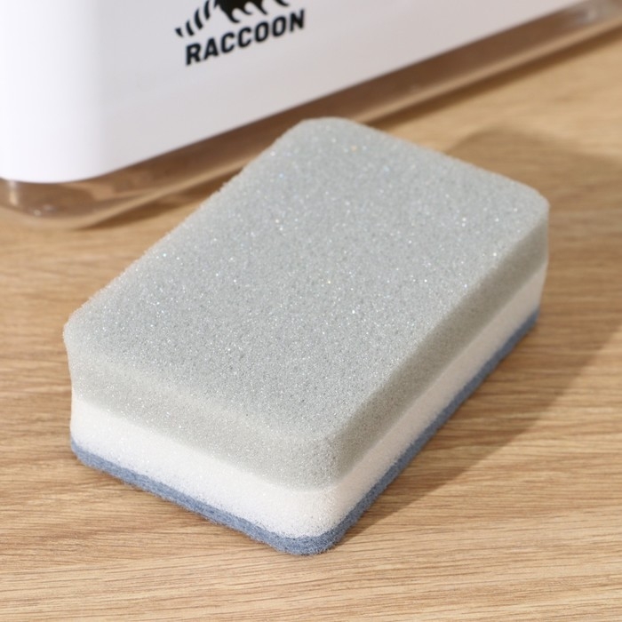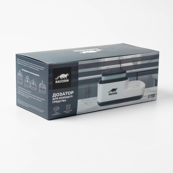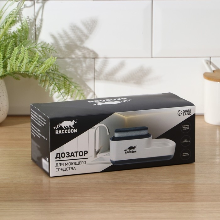 Дозатор для моющего средства с подставкой для губки Raccoon, 550 мл, губка в комплекте, цвет белый