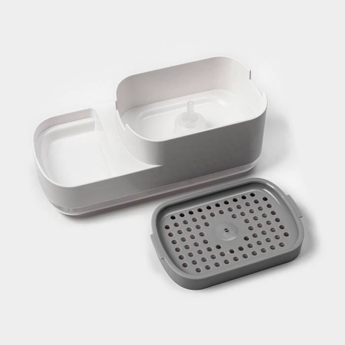 Дозатор для моющего средства с подставкой для губки Доляна, губка в комплекте, 385 мл, цвет белый