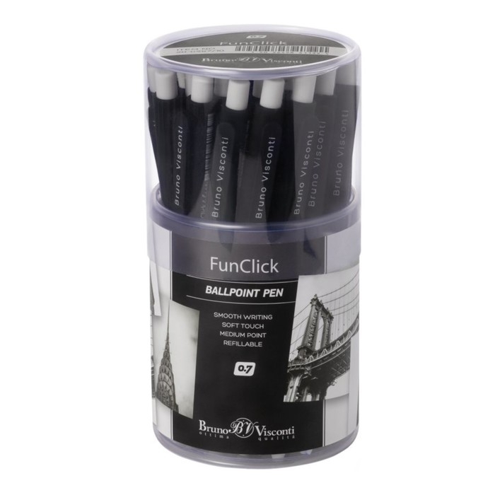 Ручка шариковая автоматическая FreshWrite FunClick. New York, узел 0.7 мм, синие пигментные чернила, корпус Soft Touch, МИКС