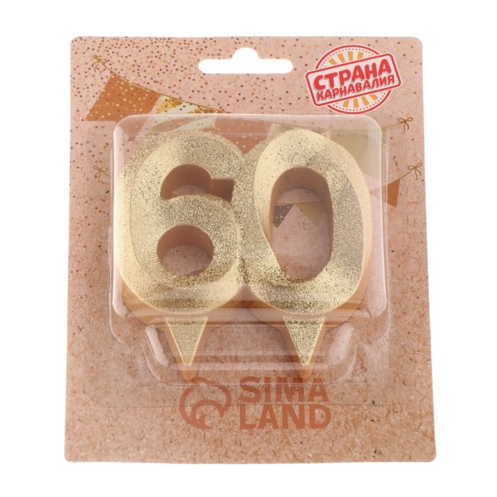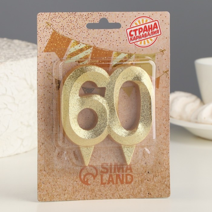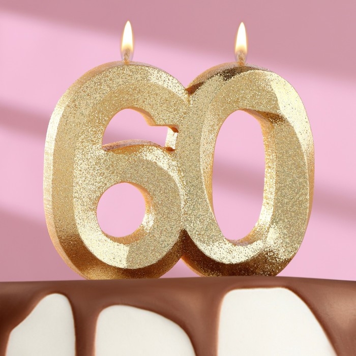 Свеча для торта юбилейная "Грань", цифра 60, золотой блеск, 8см
