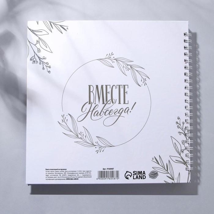 Книга пожеланий на свадьбу «Вместе навсегда», на пружине, 21,5 х 21 см.