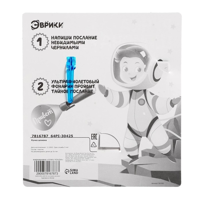 Есть обычные ручки, с которыми мы все привыкли работать. Но что если ручка могла бы делать больше, чем просто писать? Ручка с невидимыми чернилами превратит обычное письмо в захватывающую игру шпионов! Ребёнок представит себя тайным агентом, напишет секретное сообщение, которое проявляется только под ультрафиолетом.