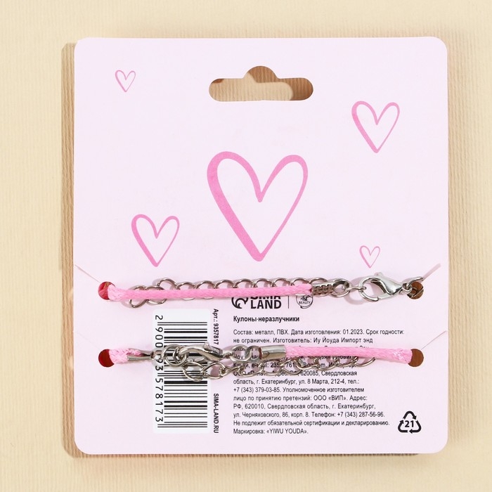 Кулоны неразлучники «Лучшей подруге», 2 шт, длина 50 см