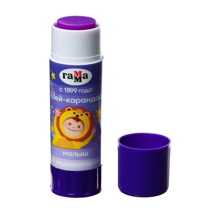 Клей-карандаш ПВП ГАММА серии "Малыш" является незаменимым помощником на уроках труда и занятиях творчеством! Вес - 15 граммов. Клей имеет индикатор фиолетового цвета, который позволяет определить место нанесения на поверхности. Спустя несколько секунд индикатор становится прозрачным. Клей легко наносится и распределяется по поверхности, оставляя тонкий и ровный клеевой слой, что позволяет расходовать его экономично. Он не деформирует поверхность бумаги. Позволяет хорошо склеивать изделия из бумаги, картона, ткани, фотографии. Он безопасен для детей, так как производится из глицерина. Круглый корпус удобно лежит в руке. Поставляется в дисплей-боксах.