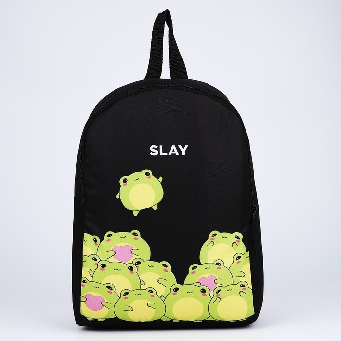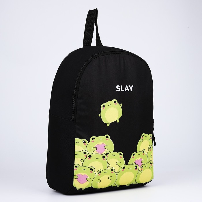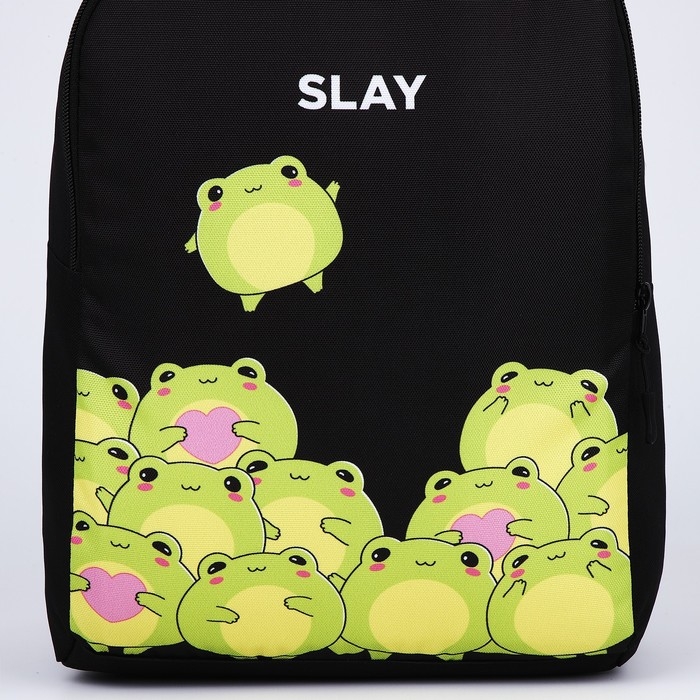 Рюкзак школьный текстильный «Лягушки», 38х14х27 см, цвет чёрный