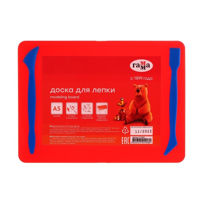 Доска для лепки пластиковая А5 Гамма, 2 стека, красная 21122026