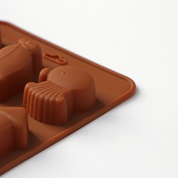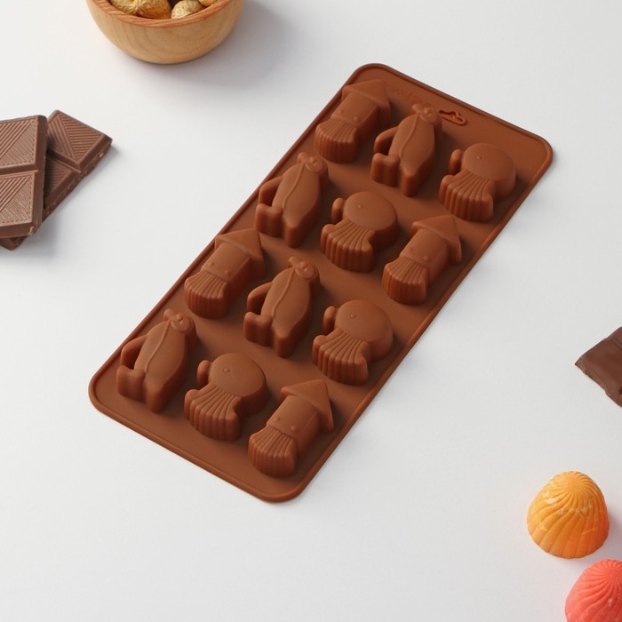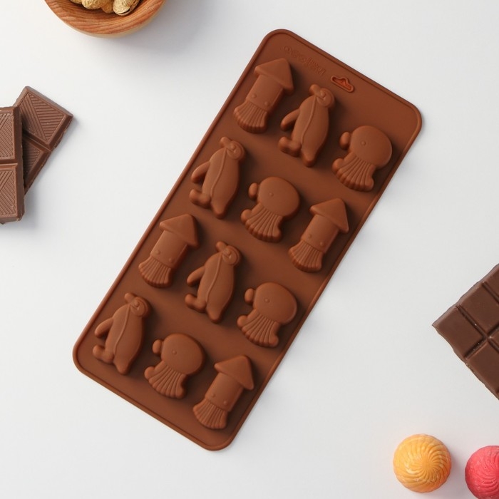 Форма для шоколада Доляна «Пингвины», силикон, 21,5×10×1,5 см, 12 ячеек, цвет коричневый