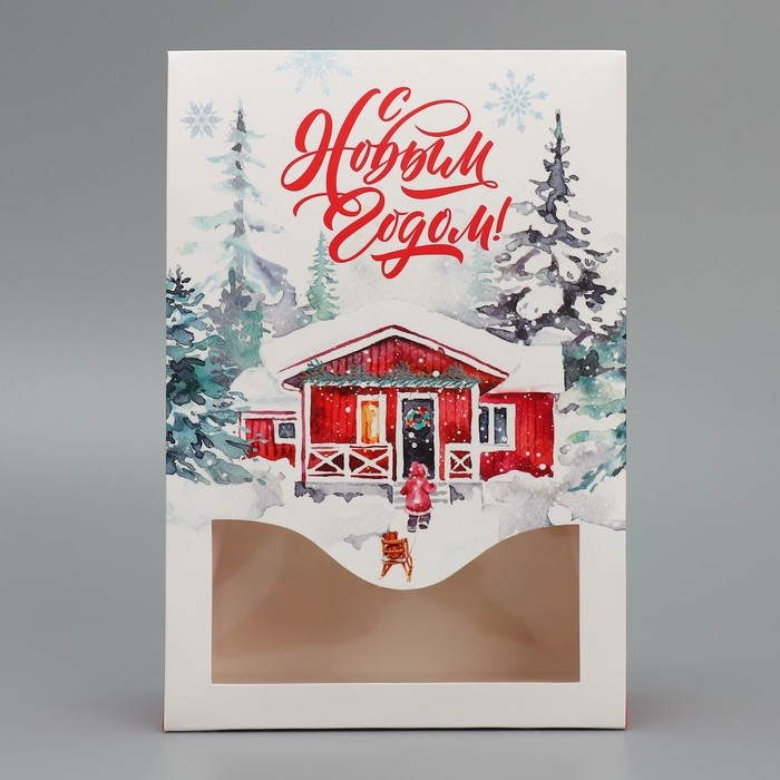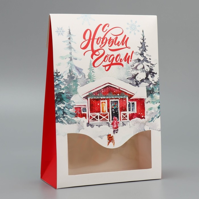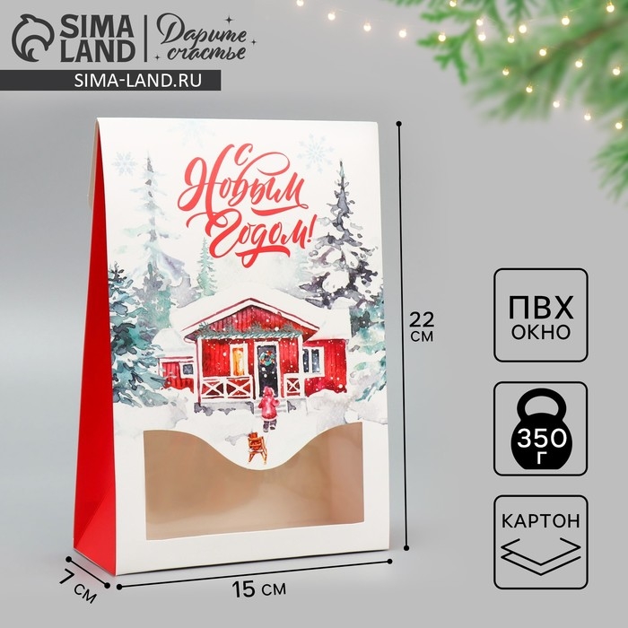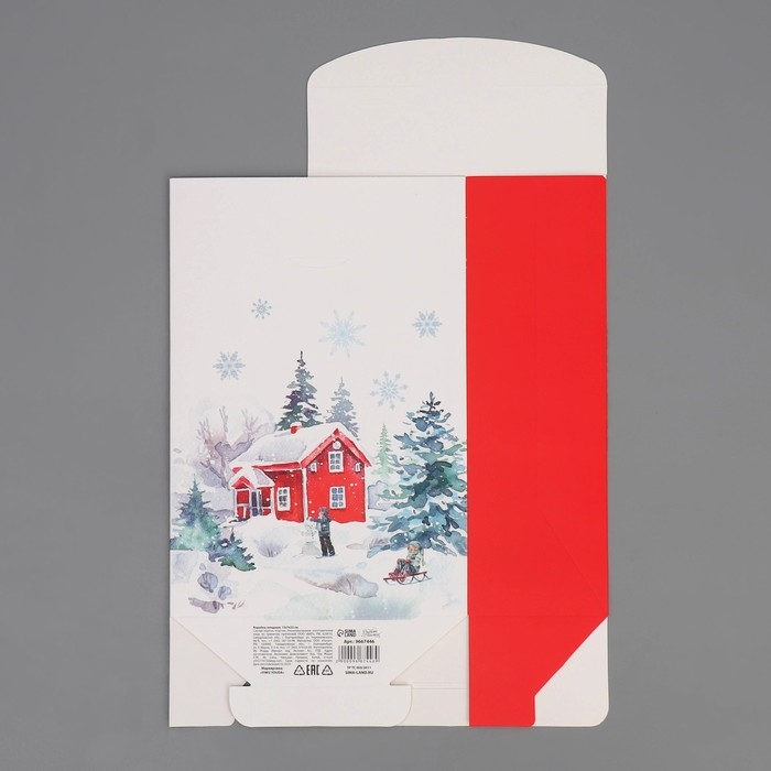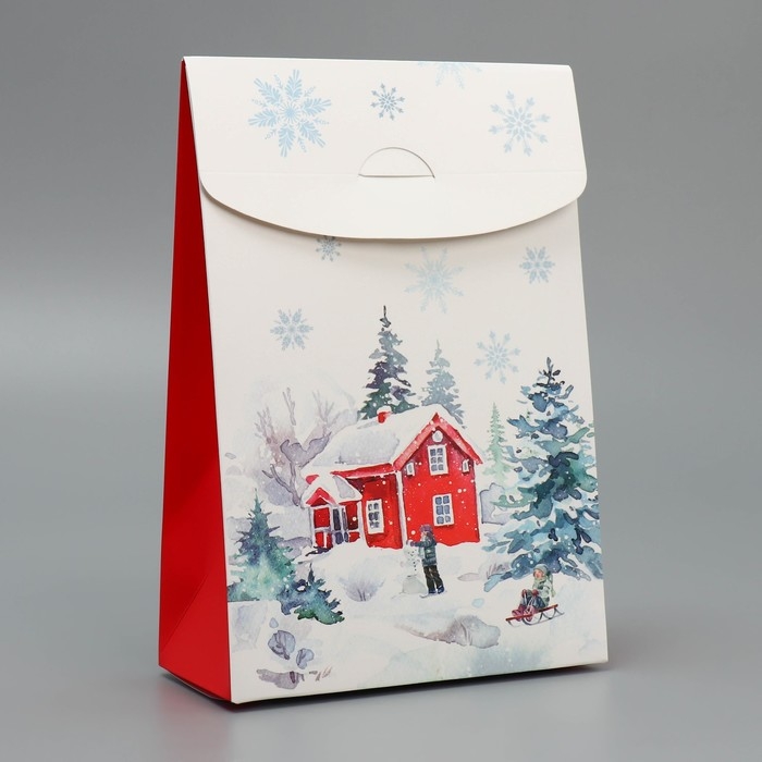 Коробка подарочная новогодняя складная «Дом в зимнем лесу», 15 х 7 х 22 см