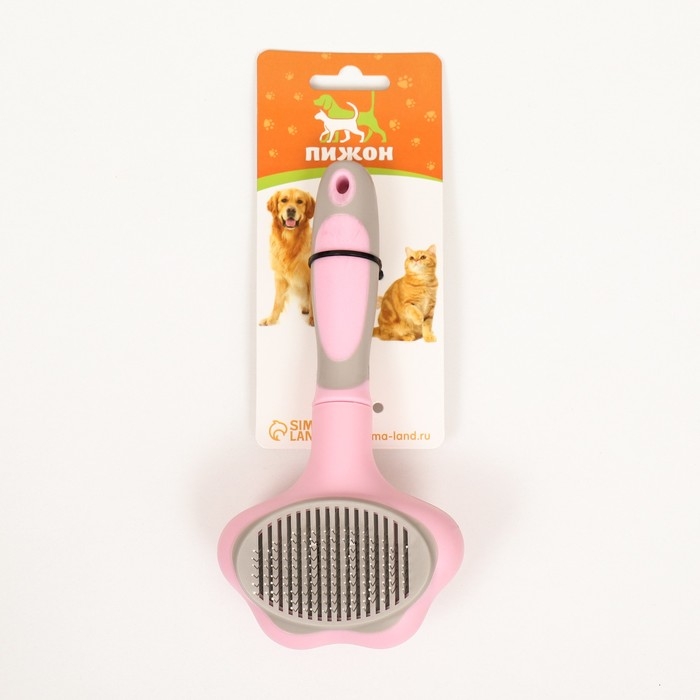 Пуходёрка пластиковая с функцией самоочистки, 9 х 18,5 см, розовая
