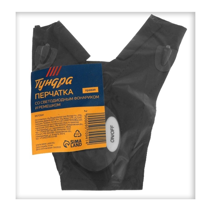 Перчатка ТУНДРА, со светодиодным фонариком и ремешком, правая