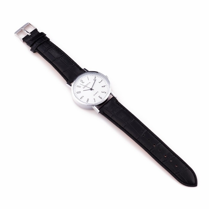 Часы наручные кварцевые мужские, d-4 см, белый циферблат