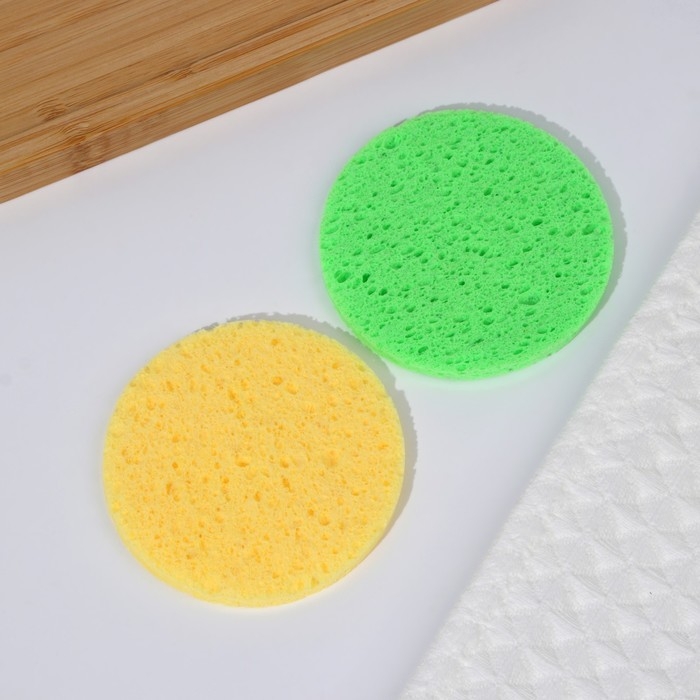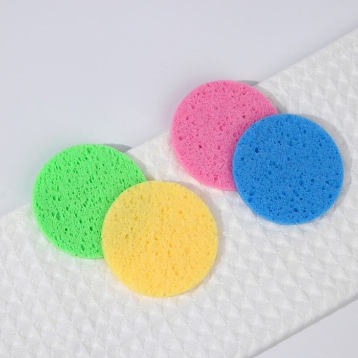 Спонжи для умывания, круглые, 2 шт, цвет МИКС