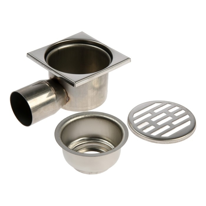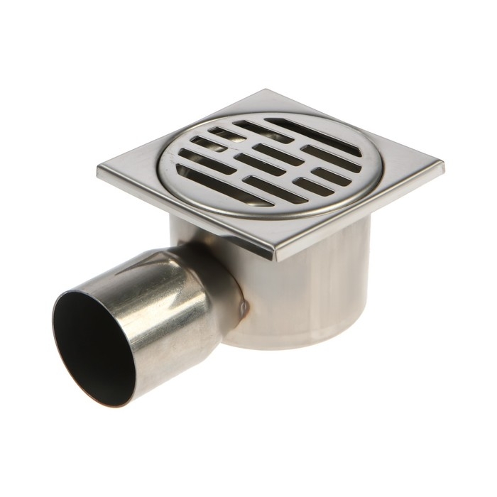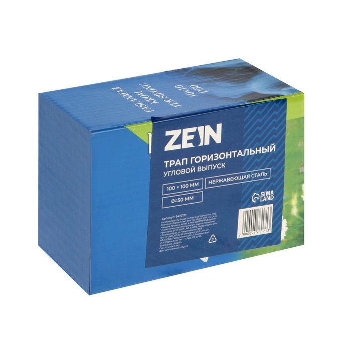 Трап ZEIN engr, 100х100 мм, горизонтальный, d=50 мм, угловой выпуск, нержавеющая сталь