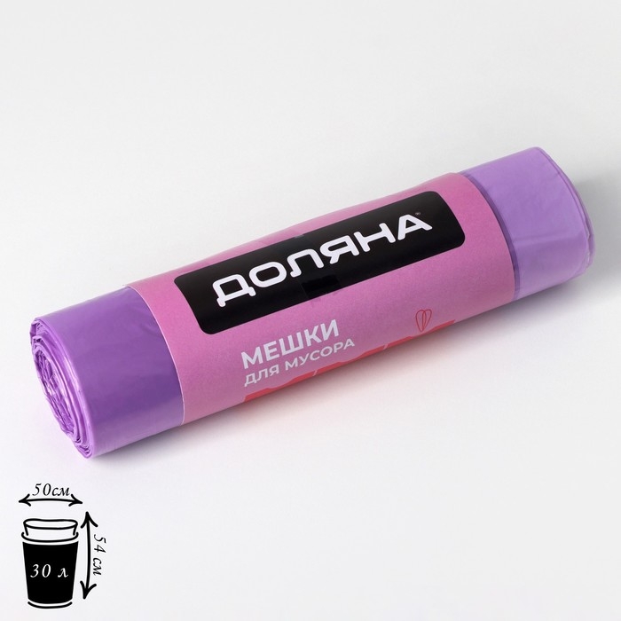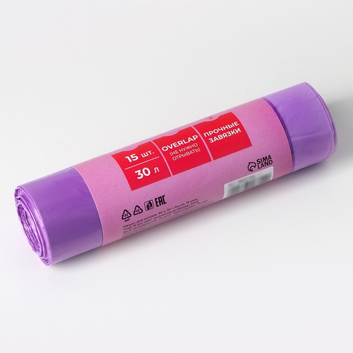 Мешки для мусора с завязками Доляна Overlap, 30 л, 50×54 см, 13 мкм, ПНД, 15 шт, цвет фиолетовый
