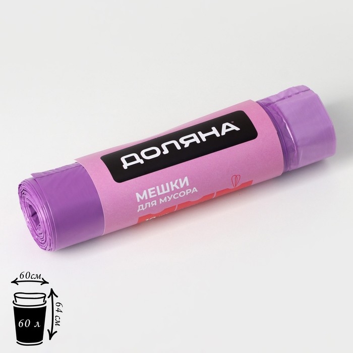 Мешки для мусора с завязками Доляна Overlap, 60 л, 60×64 см, 15 мкм, ПНД, 10 шт, цвет фиолетовый