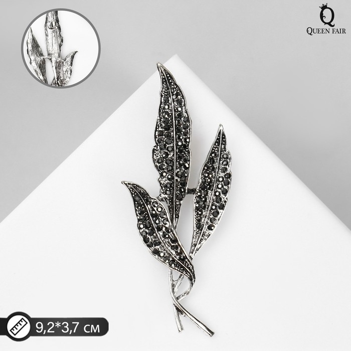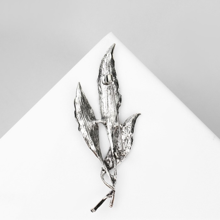 Брошь "Листья" трио, цвет серый в чернёном серебре