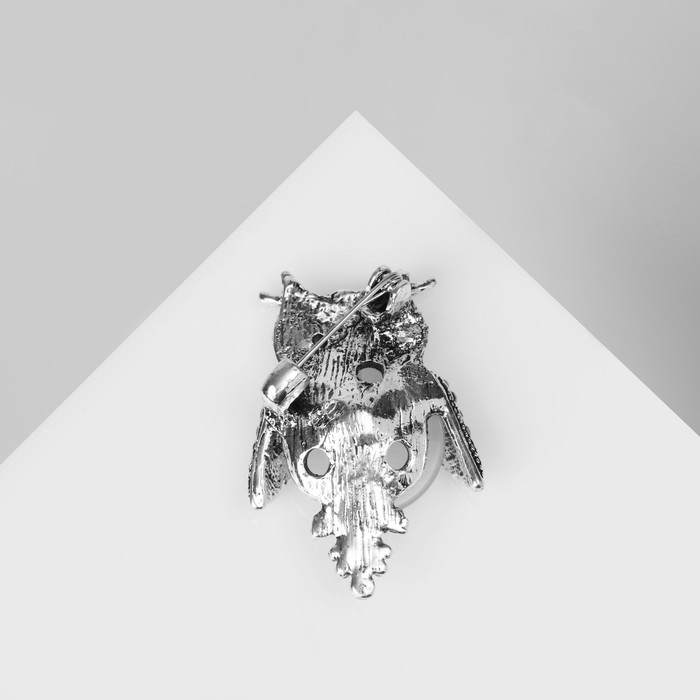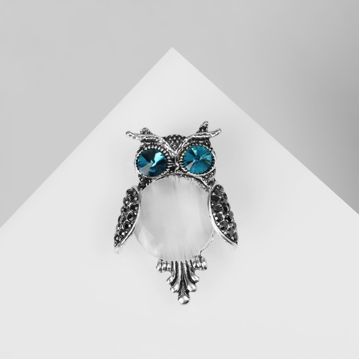 Брошь «Сова круглая», цвет бело-синий в чернёном серебре