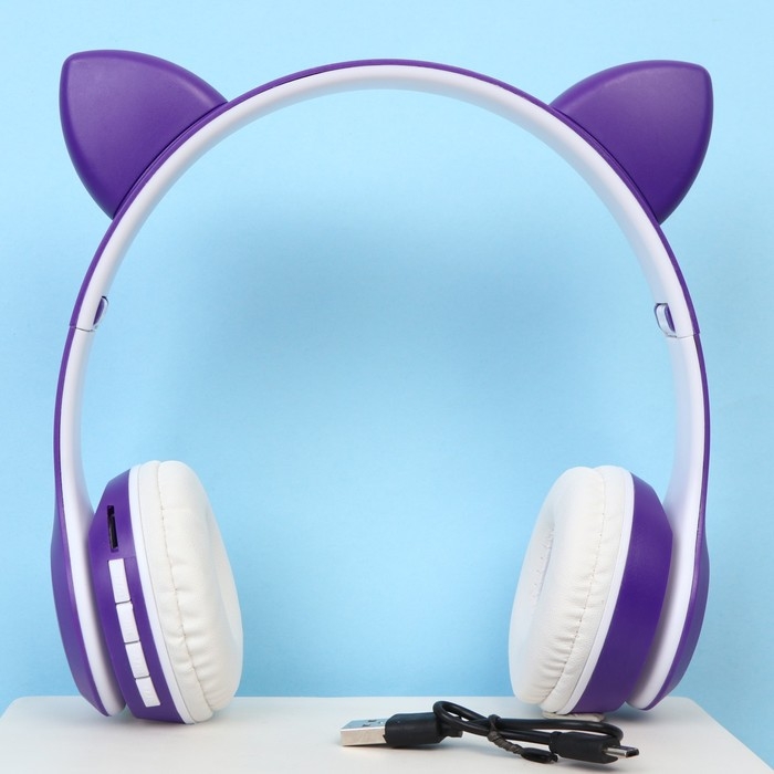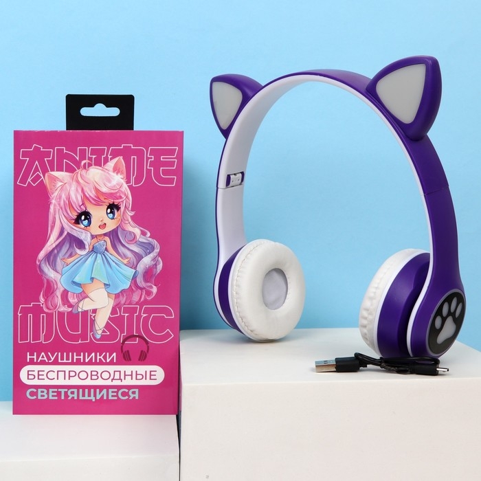 Наушники светящиеся ушки, беспроводные «Аниме»,сиреневые W-02