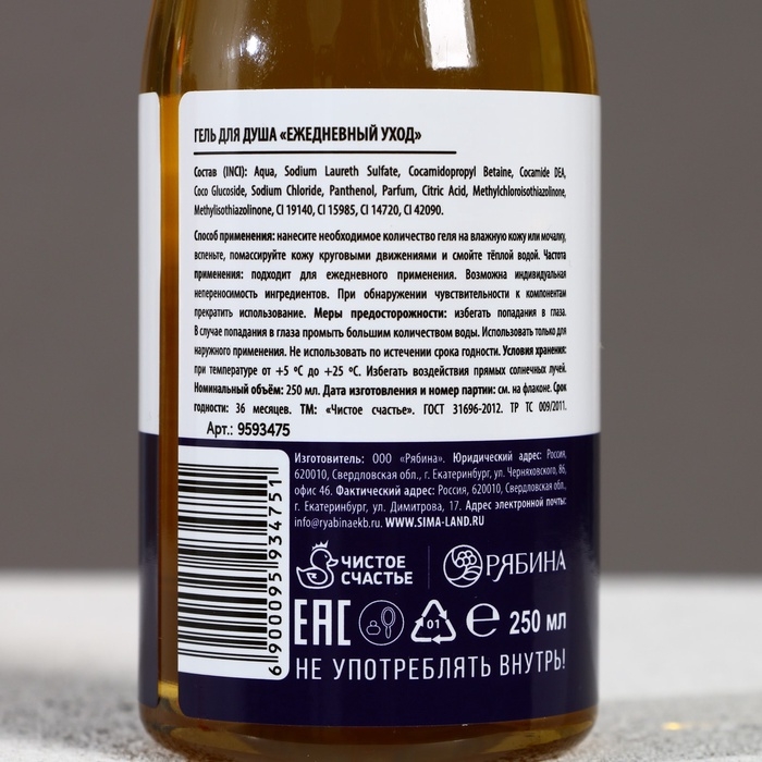 Гель для душа пиво ЧИСТОЕ СЧАСТЬЕ «Самый лучший», 250 мл, аромат бергамота и лимона