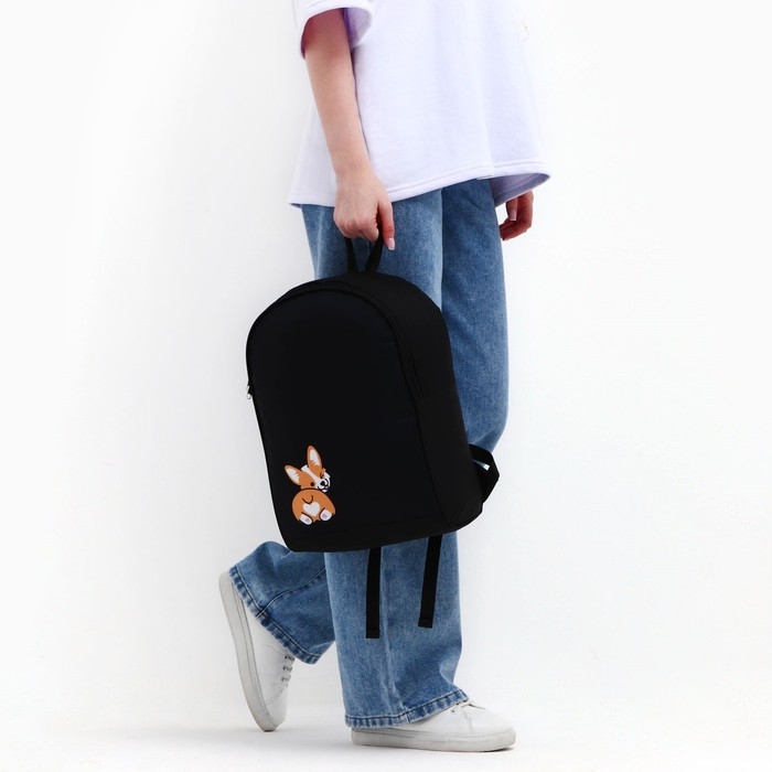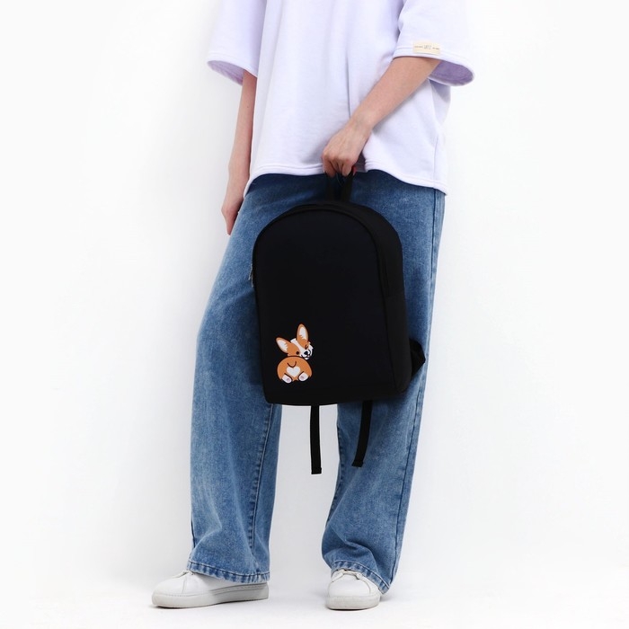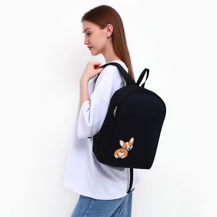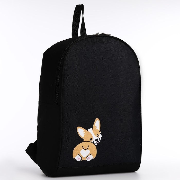 Рюкзак школьный текстильный «Корги», 38х14х27 см, цвет чёрный