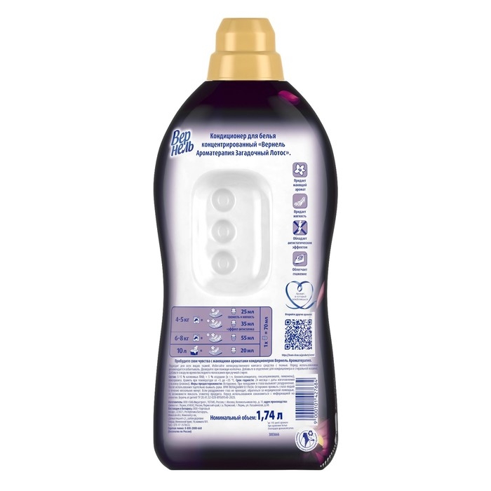 Кондиционер для белья Vernel - это отличное средство для ухода за вашей одеждой. Он обладает антистатическим эффектом, облегчает глажку и придает белью мягкость и свежесть. Vernel также обладает приятным ароматом, который сохраняется на белье после стирки.