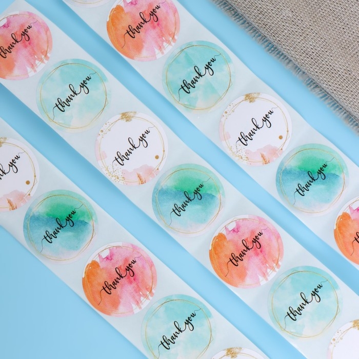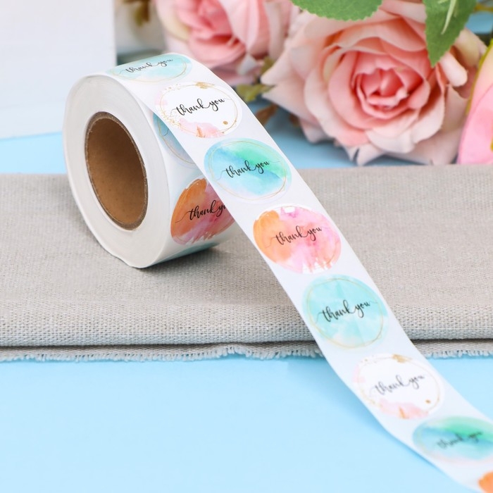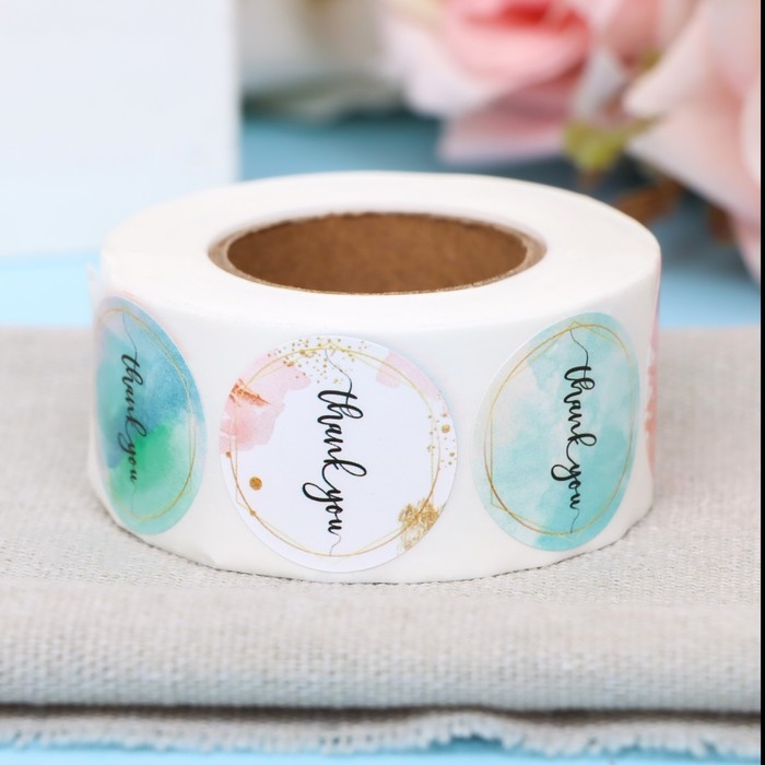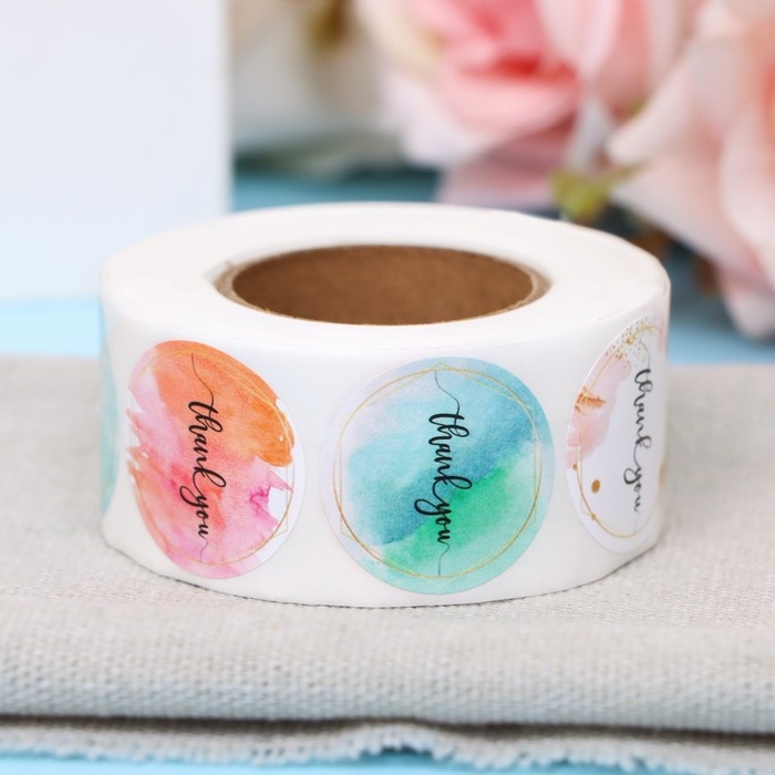 Наклейки в рулоне "Спасибо",250 шт,2,54 х 7,62 см