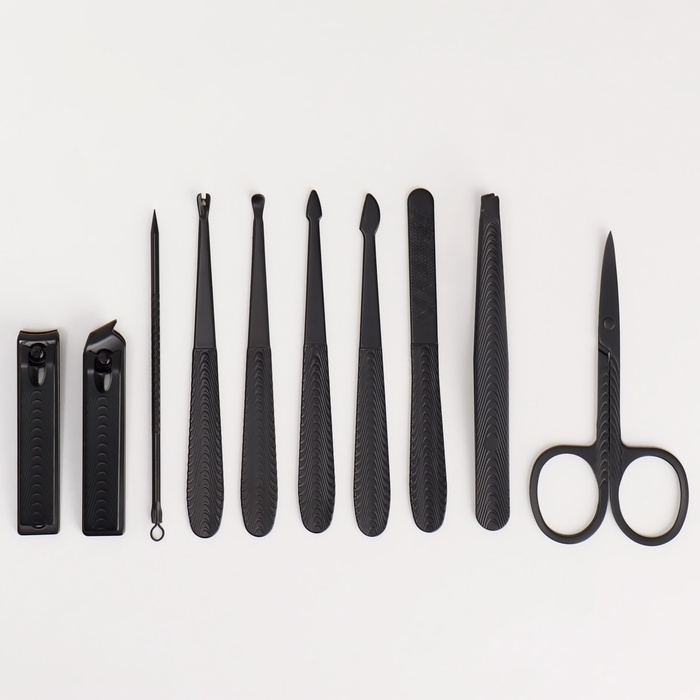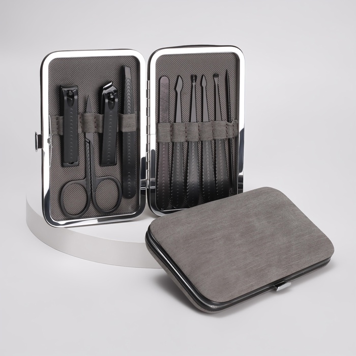 Набор маникюрный, 10 предметов, в футляре, цвет серый/чёрный