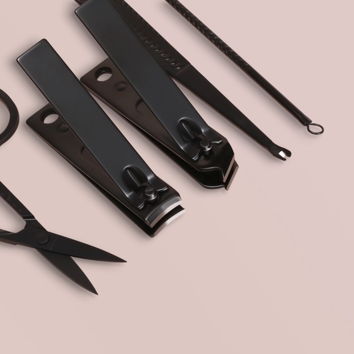 Набор маникюрный, 5 предметов, в футляре, цвет чёрный