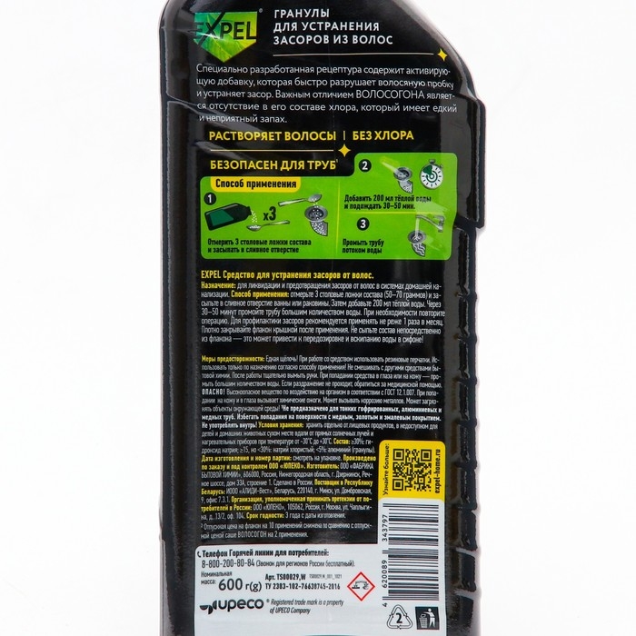 - Мощная формула: Средство Expel обладает мощной формулой, которая моментально разлагает и удаляет засоры, восстанавливая нормальный поток воды.