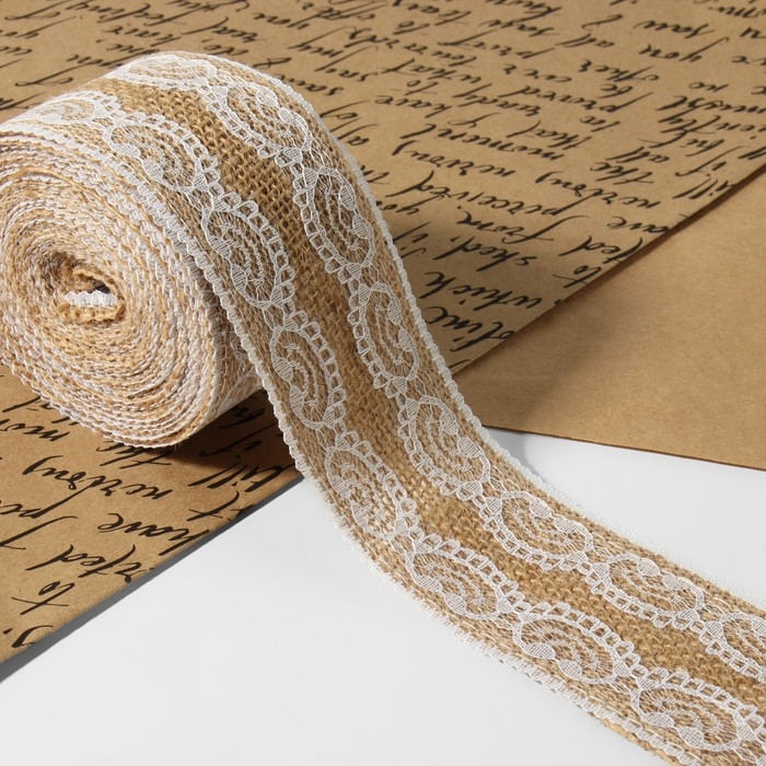 Лента холщовая «Кружево», натуральная, 50 мм, 4,5 ± 0,5 м, цвет белый