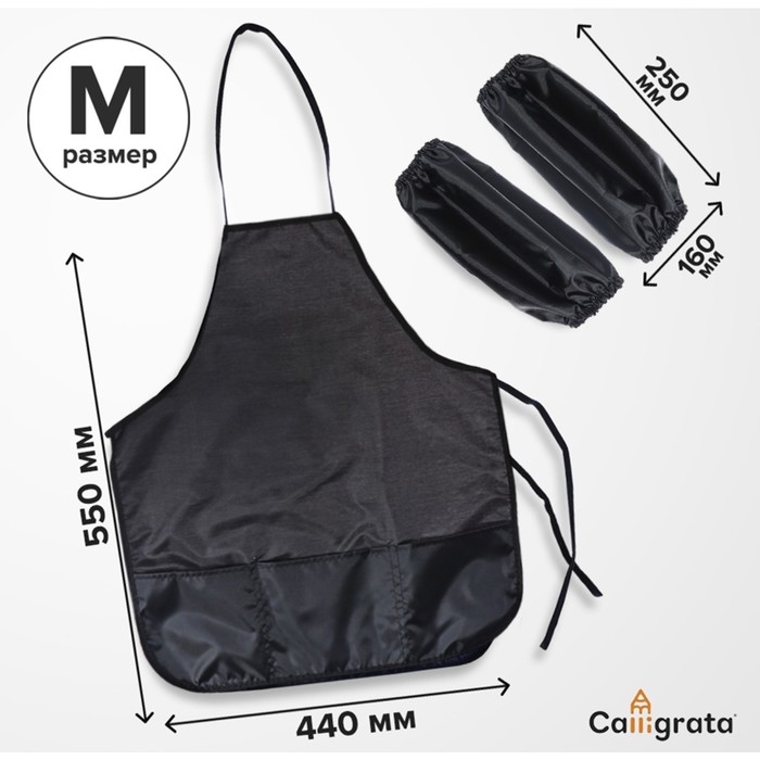 Фартук для труда + нарукавники, 550 х 440/250 х 160 мм, размер M (рост 122-158), Calligrata черный