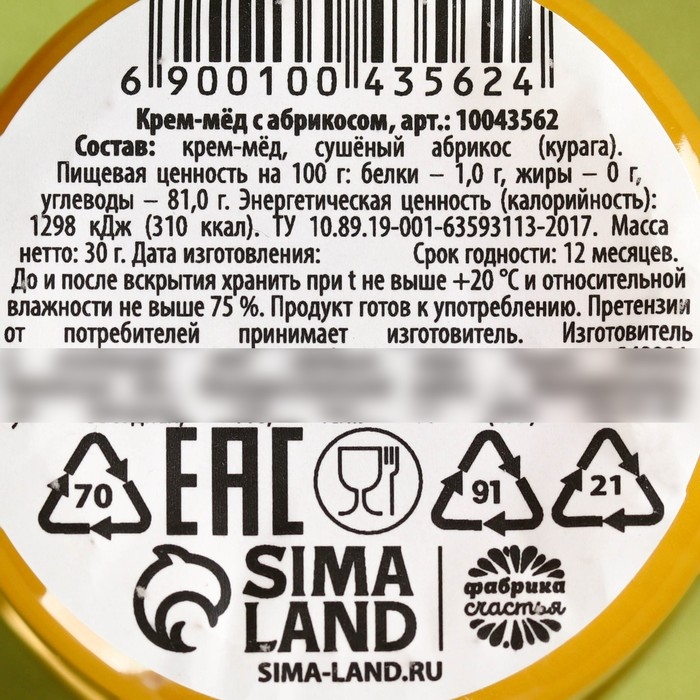 Мёд кремовый «С 23 февраля» вкус: абрикос, 30 г.
