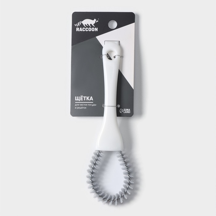 Щётка для чистки посуды и решёток-гриль Raccoon, 17×4 см, цвет белый