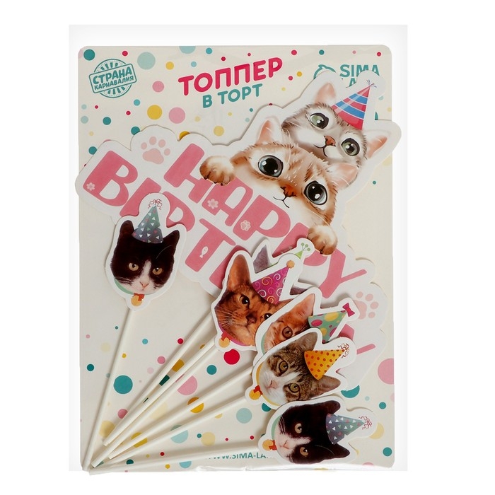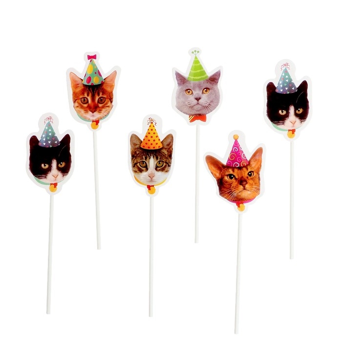 Набор топперов «С днём рождения. Котики», набор 7 шт.