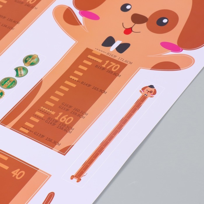 Наклейка пластик интерьерная цветная ростомер "Собачка в шляпке" 45x60 см