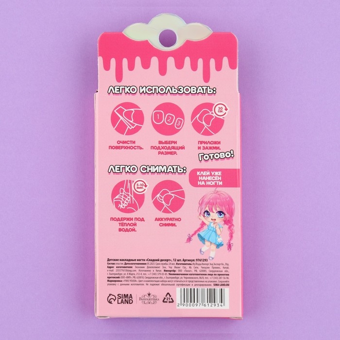Детские накладные ногти «Сладкий десерт», 12 шт