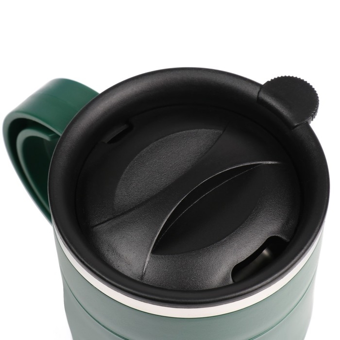 - Зелёный цвет термокружки добавит нотку свежести и природной гармонии в ваше путешествие