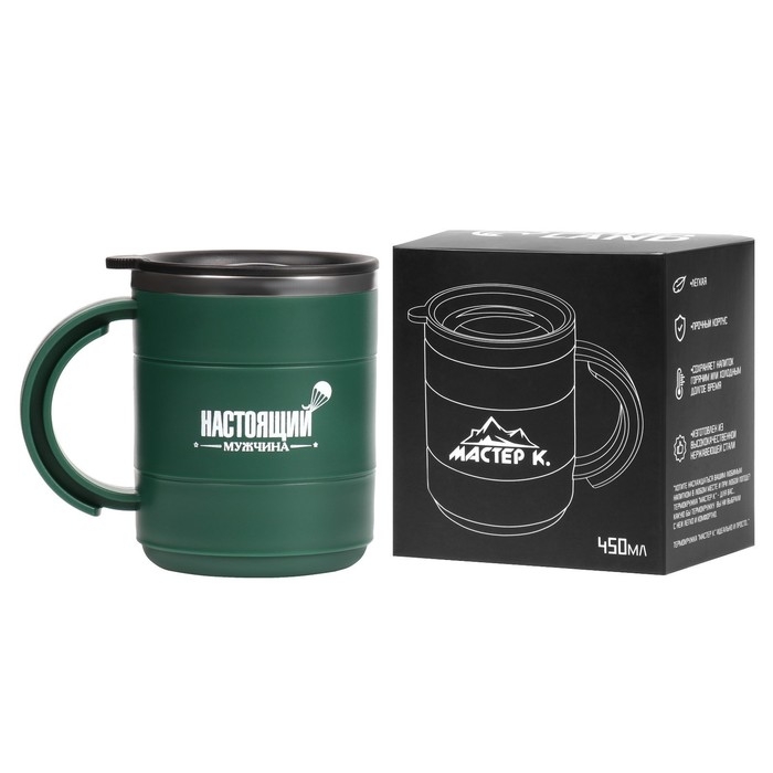 Термокружка "Мастер К" Поход "Настоящий мужчина",450 мл, сохраняет тепло 2 ч, 12.5 х 10.5 см